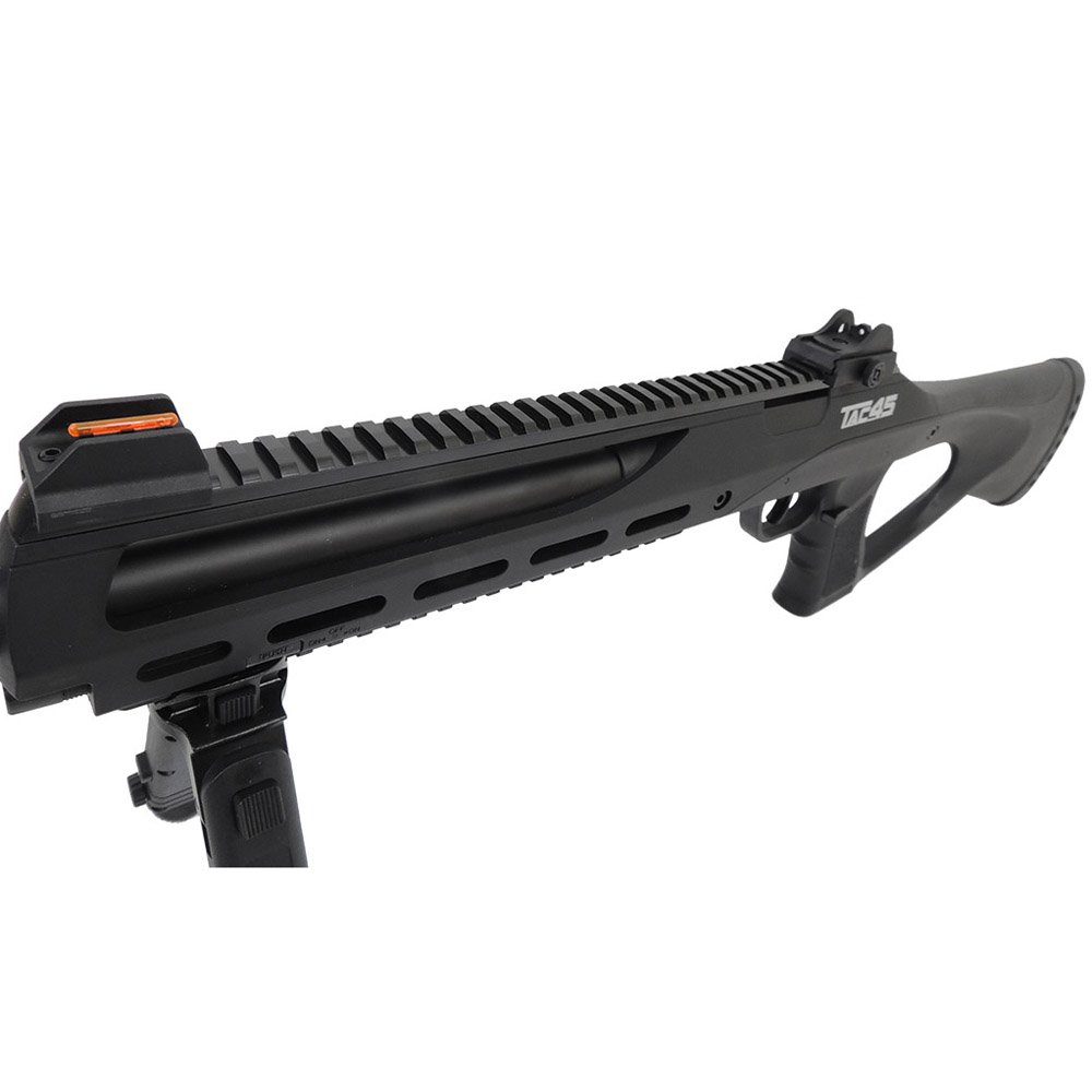Comments: It's nice when a new action shooting air rifle comes out on the market since there are not a ton of them. The ASG TAC-4.5 is a nice addition if you're looking for a BB shooter for plinking around the yard. You can also get an airsoft version called the ASG TAC-6 if you want to shoot some rounds that are a little bit less destructive and more game friendly. The ASG TAC-4.5 offers a lot of customizability with its top and bottom rails for accessories, which allow for the placement of the included removable iron sights and bi-pod. I would recommend adding a red dot sight and perhaps even a tac light to really dec out this modern looking air rifle.