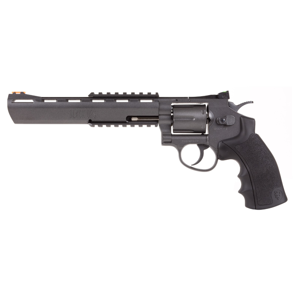 Practice aiming, trigger control, shooting double-action, shooting single-action, and holster draws to maintain proficiency for your firearm revolvers. Just think of the bucks you'll save on ammo! Even if you're not trying to maintain firearm proficiency with this realistic gun, you'll have lots of fun pulling the trigger. Get max accuracy from your Black Ops Exterminator CO2 revolver by mounting a dot sight on the top Weaver rail. There's also an accessory Weaver rail under the barrel. A laser or flashlight should help you nail those targets. Steel BBs can ricochet. The shooter and everyone in the shooting area should wear safety glasses when a gun is being handled (even if it's unloaded). Remember to remove all pets from the area as rebounding ammo can hit them too.