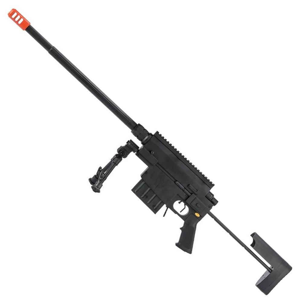 The Nemesis Arms VANQUISH sniper rifle is a unique weapons platform in which it is a quick-takedown backpackable precision rifle that is not only ultra lightweight but also sports an ultra low-profile. The VANQUISH takes down into a package small enough to fit most daypacks; this allows players to run a full combat loadout with a quickly deployable precision rifle to supplement their primary weapon. Echo1 has done an excellent job reproducing the Airsoft version of the VANQUISH with its CNC machined receiver, CNC take down barrel, fully collapsible stock, and fully featured deep engraved trademarks.