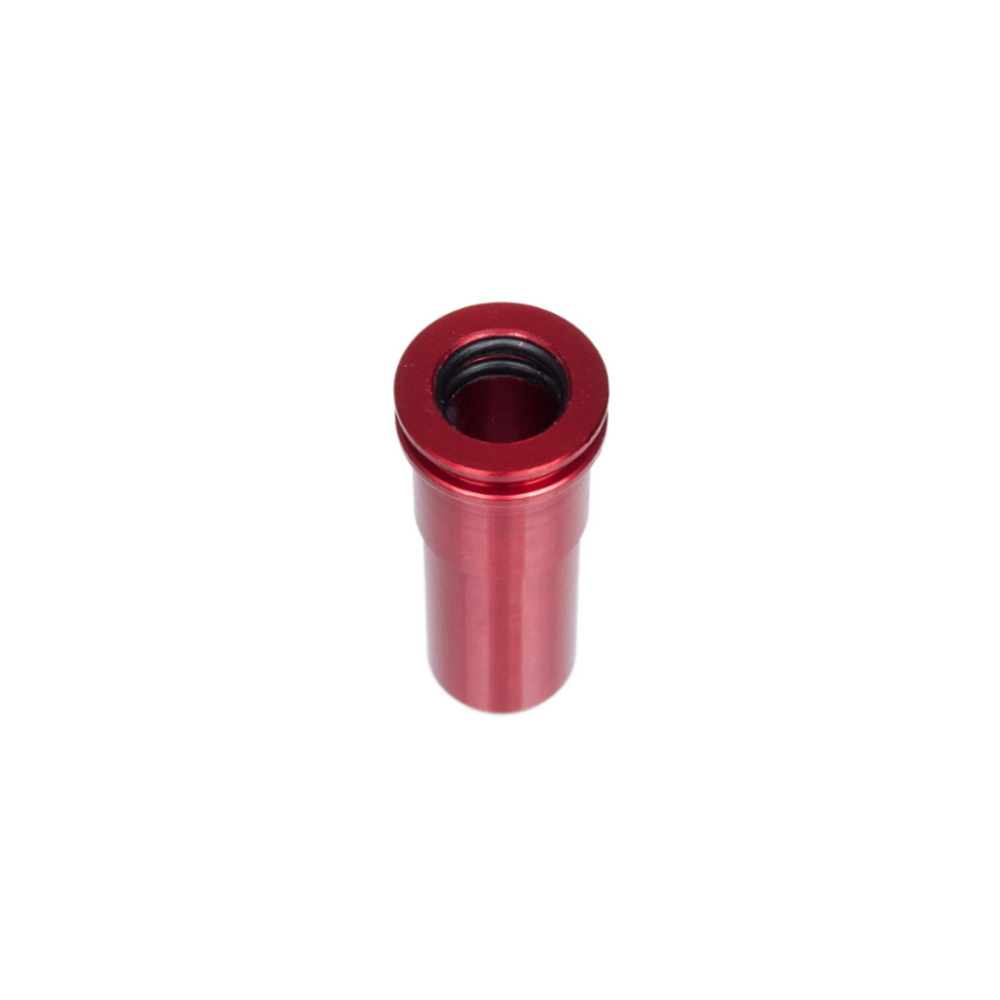 Aluminum nozzle with a double O-ring for M4/V2 series AEG's. Unlike many stock nozzle's this one comes with a double O-ring, providing a very tight seal to the cylinder head. I only recommend these if you are having problems with your currently nozzle / cylinder seal. If though it comes up too tight you can always remove one of the O-rings.